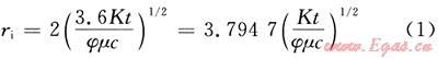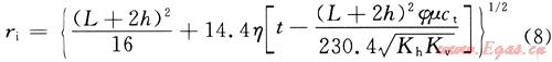 石油工業(yè)中國際上對于探測半徑的定義為:在某一確定的瞬時,給井中施加一個壓力脈沖,對該脈沖響應達到最大值的位置就稱為探測半徑。在標準單位制式下,探測半徑表示為[1]: