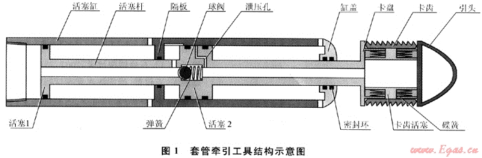 1 套管牽引工具的結(jié)構(gòu)組成、應(yīng)用條件與工作過程