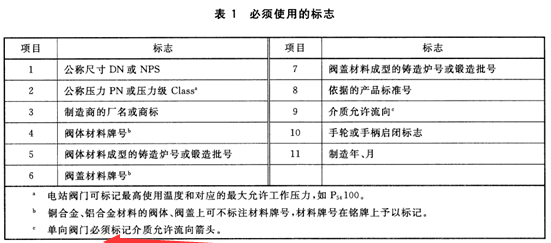 公稱尺寸不小于DN32的閥門(mén)必須使用的標(biāo)志見(jiàn)表1。