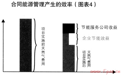 用能企業(yè)委托EMCo進行能源系統(tǒng)的運行管理和節(jié)能改造,EMCo通過提高能源效率降低能源費用,并按照合同約定擁有全部或者部分節(jié)省的能源費用。EMCo的經(jīng)濟效益來自能源費用的節(jié)約,用能企業(yè)的經(jīng)濟效益來自能源費用(承包額)的減少。比如,一個工業(yè)企業(yè)年用天然氣量為1億方,通過合同能源管理的模式,年耗用9000萬方便能實現(xiàn)同樣的生產(chǎn)量(生產(chǎn)總值),總共節(jié)約1000萬方。按3元/立方米記,年節(jié)約能耗成本3000萬元。若用能企業(yè)與節(jié)能服務(wù)公司雙方簽訂的分享比例為6:4,分別給雙方帶來的經(jīng)濟效益為1800萬元、1200萬元。另外,還減少了節(jié)約1000萬方天然氣燃燒所產(chǎn)生的CO2,實現(xiàn)了社會效益,從而促進了天然氣產(chǎn)業(yè)更好地發(fā)展。