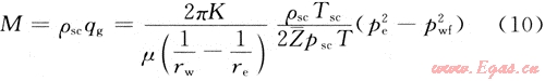將式(9)代入式(4)和式(3),并將氣體流量折算為地面標準狀況下,氣井質(zhì)量流量表達式為: