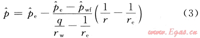 已知邊界條件:r=rw,p=pw;r=re,p=pe,將已知條件代入式(2)求得: