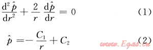 球面向心穩(wěn)定滲流的壓力分布表達式: