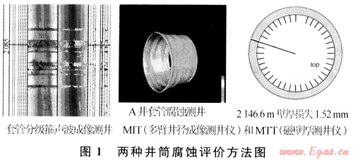 腐蝕評價(jià)方法主要有兩種:MIT和MTT測井、套管分級箍聲波成像測井(圖1)。