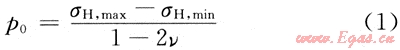 此外,Nolte和Smith研究認(rèn)為具有微裂縫的儲(chǔ)層壓裂時(shí),當(dāng)縫內(nèi)凈壓力超過(guò)天然微裂縫的張開(kāi)的臨界壓力(p0)時(shí)可以實(shí)現(xiàn)天然微裂縫的開(kāi)啟,p0公式為:[1~4]: