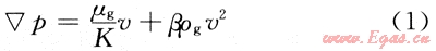 氣體由于易壓縮、易流動的特點(diǎn)使得其在低滲透儲層中的流動易受到壓力和流速的影響表現(xiàn)出非線性的滲流特征[4]。氣體在高速流動時表示為: