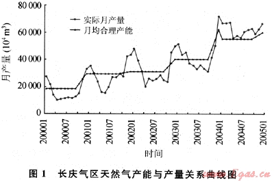 我國(guó)天然氣開(kāi)發(fā)利用正處在發(fā)展的初期,產(chǎn)量和用氣量增長(zhǎng)很快,但安全穩(wěn)定供氣的基礎(chǔ)設(shè)施尚不完善,利用上游氣田增加產(chǎn)量進(jìn)行調(diào)峰,成為這一階段的主要手段。如長(zhǎng)慶氣區(qū)的目標(biāo)市場(chǎng)基本位于我國(guó)北方,四季溫差變化大,冬夏最為懸殊,主力氣田產(chǎn)量波動(dòng)特別大。統(tǒng)計(jì)分析2000~2003年氣田生產(chǎn)情況,有以下突出的特點(diǎn);一是月產(chǎn)量曲線波動(dòng)明顯,冬季出現(xiàn)明顯的高峰:二是調(diào)峰期提產(chǎn)幅度大,從2000~2003年,年均月產(chǎn)量與調(diào)峰期月產(chǎn)量比較,提產(chǎn)幅度分別為57%、31%,、42%和27%,相應(yīng)調(diào)峰氣量占年產(chǎn)量比例分別為19.6%、11.8%、14.4%和9.6%,調(diào)峰氣量比例逐漸下降的原因,主要是從2001年冬季開(kāi)始,大港儲(chǔ)氣庫(kù)相繼建成并發(fā)揮調(diào)峰作用;三是調(diào)峰期的產(chǎn)量均在氣田合理生產(chǎn)能力之上運(yùn)行,而其他季節(jié)基本在合理生產(chǎn)能力下運(yùn)行(圖1)。