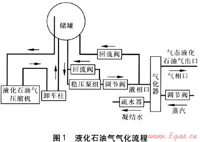關(guān)鍵詞:液化石油氣;蒸汽式氣化器;工藝流程;控制方式