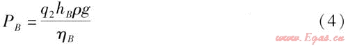 點(diǎn)B水泵軸功率PB的計(jì)算式為: