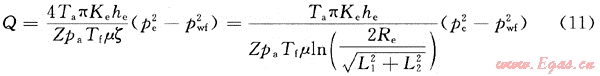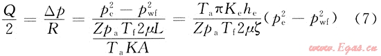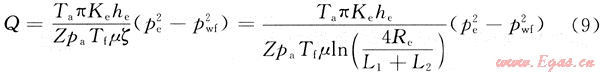 ,將其代入式(7)可得壓裂火山巖氣井單裂縫不對稱產(chǎn)能模型為: