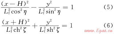 式中:ξ、η為與橢圓族中任意橢圓大小有關(guān)的特征量;chξ為雙曲余弦函數(shù);shξ為雙曲正弦函數(shù)。