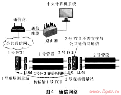 中央計(jì)算機(jī)系統(tǒng)由服務(wù)器、操作員站、工程師站、打印機(jī)等組成,經(jīng)網(wǎng)絡(luò)交換機(jī)與Ethernet工業(yè)標(biāo)準(zhǔn)以太網(wǎng)連接構(gòu)成一個(gè)LAN局域網(wǎng)。局域網(wǎng)通過(guò)路由器和通信線(xiàn)纜接入公共通信網(wǎng)(Internet),實(shí)現(xiàn)中央計(jì)算機(jī)系統(tǒng)與現(xiàn)場(chǎng)測(cè)量站間的數(shù)據(jù)通信。各現(xiàn)場(chǎng)測(cè)量站均有固定的IP地址,整個(gè)漏點(diǎn)檢測(cè)系統(tǒng)形成一個(gè)獨(dú)立的虛擬專(zhuān)用通信網(wǎng)絡(luò),確保信息傳輸?shù)陌踩浴,F(xiàn)場(chǎng)測(cè)量站通過(guò)公共通信網(wǎng)與中央計(jì)算機(jī)系統(tǒng)實(shí)現(xiàn)實(shí)時(shí)通信、數(shù)據(jù)傳輸。中央計(jì)算機(jī)系統(tǒng)具有采集過(guò)程數(shù)據(jù)、提供操作指導(dǎo)、進(jìn)行數(shù)據(jù)分析、系統(tǒng)診斷、系統(tǒng)報(bào)警、打印報(bào)告和趨勢(shì)顯示等功能。