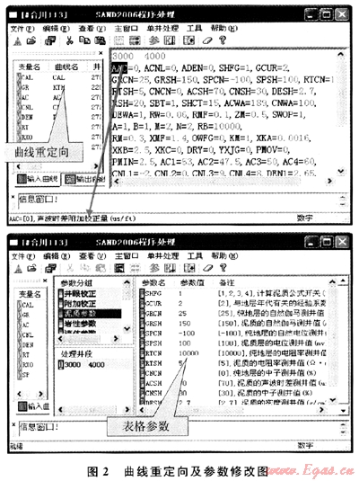 無論是文本方式還是表格方式下,均可快速得到當前參數(shù)的交會圖[5],以便用戶快速修改處理參數(shù),提高工作效率。 2 儲層參數(shù)計算模塊