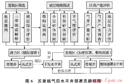 第三,依據(jù)區(qū)帶特征,開展針對性研究,進(jìn)一步落實富集區(qū):①蘇里格中區(qū)——將高精度二維地震和有限的三維地震資料相結(jié)合,預(yù)測砂巖厚度及含氣性;描述河道砂體展布范圍,刻畫有效儲層分布特征,進(jìn)行相對富集區(qū)篩選;②蘇里格東區(qū)——在分析開發(fā)井的基礎(chǔ)上,靜態(tài)與動態(tài)結(jié)合,對盒8段、山1段和下古生界進(jìn)行再認(rèn)識,上、下古生界綜合考慮,落實富集區(qū);③蘇里格氣田西區(qū)——深化地層水分布規(guī)律研究,綜合應(yīng)用地質(zhì)、測井、測試、地層水分析及生產(chǎn)動態(tài)等資料,多學(xué)科交叉滲透,在統(tǒng)一的技術(shù)思路下對蘇里格氣田西區(qū)氣水關(guān)系進(jìn)行一體化研究,通過“避水找氣”,落實富集區(qū)。