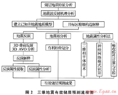 其次,重點區(qū)實施三維地震、強化儲層預(yù)測。在二維地震選區(qū)基礎(chǔ)上,優(yōu)選潛力區(qū)開展三維地震。充分利用三維資料信息量大、地質(zhì)內(nèi)涵豐富的優(yōu)勢,以主河道帶預(yù)測為基礎(chǔ),以有效儲層預(yù)測為核心,以疊前技術(shù)為主,以疊后技術(shù)為輔;進(jìn)行主河道帶預(yù)測、儲層及含氣性預(yù)測,并利用三維可視化手段對儲層及有效儲層進(jìn)行精細(xì)刻畫;最后通過綜合評價優(yōu)選高產(chǎn)富集分布區(qū)(圖2)。