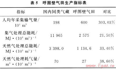 地面工程設(shè)計(jì)與工藝技術(shù)方面突出了規(guī)模性、適應(yīng)性,先進(jìn)性、科學(xué)性、安全性,以經(jīng)濟(jì)效益為指導(dǎo)思想,采用了8項(xiàng)新工藝新技術(shù),對(duì)地面工程設(shè)計(jì)進(jìn)行了優(yōu)化,與國(guó)內(nèi)同類(lèi)氣藏相比(表5),各項(xiàng)指標(biāo)均達(dá)到先進(jìn)水平[5~6]。