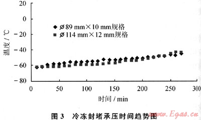 3.2 冷凍封堵承壓時(shí)間試驗(yàn)