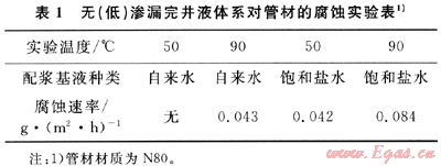 從實(shí)驗(yàn)結(jié)果可知,淡水配制的無(wú)(低)滲漏完井液體系對(duì)N80管材基本沒(méi)有腐蝕,用飽和鹽水配制的無(wú)(低)滲漏完井液體系腐蝕很小,不影響管材的正常壽命。