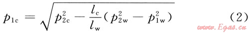 式中p1c為室內(nèi)氣竄試驗(yàn)中低壓排放壓力,MPa;lw為井眼內(nèi)額定長度水泥漿柱高度,30.48m;p2w為高壓氣層壓力;MPa;p1w為最近氣層第一段30.48m長水泥漿柱上部液柱壓力,MPa;lc為試驗(yàn)儀器內(nèi)水泥漿柱高度,0.1524m;p2c為注塞壓力,2.8MPa。