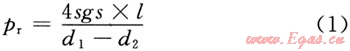 式中pr為用于克服靜膠凝強(qiáng)度的壓力,Pa;sgs為靜膠凝強(qiáng)度,Pa;l為水泥漿柱長度,m;d1為井眼直徑,m;d2為套管直徑,m。