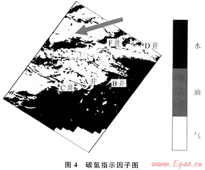 對比反演結果圖,發(fā)現圖4指示的含氣范圍(黃色區(qū)域)、氣水界面以及與各井含油氣性與實鉆結果吻合。需要強調的是:該技術對B井的預測與實鉆結果吻合,更接近地質認識。但是PY地區(qū)F井北部有一處面積達20km2的高含氣區(qū)(箭頭所示),需要進一步評價、落實該地區(qū)的含油氣性。