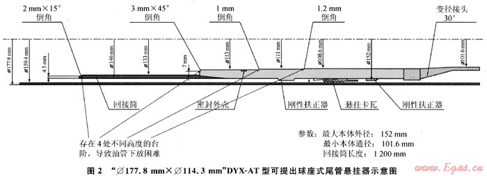 2) 懸掛器入井座掛后,除上面提到的11.21mm的臺(tái)階,內(nèi)壁還存在10mm(3×45°倒角)、1mm和1.2mm共3個(gè)臺(tái)階(圖2),即使油管喇叭口順利進(jìn)入懸掛器回接筒,在穿越懸掛器過程中也存在較大遇阻、遇卡風(fēng)險(xiǎn)。