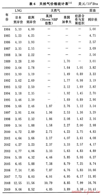 有人可能會(huì)說美國(guó)的天然氣價(jià)格比中國(guó)還低,這也是事實(shí)。這是因?yàn)樘烊粴獠煌谑?,沒有形成世界統(tǒng)一的價(jià)格,全球大致形成了亞太、歐洲、北美3大市場(chǎng),亞太地區(qū)價(jià)格最高,歐洲較低,北美最低(表6)。不可能因?yàn)橹袊?guó)的生活水平低,就能得到廉價(jià)的天然氣,氣價(jià)是由市場(chǎng)決定的。