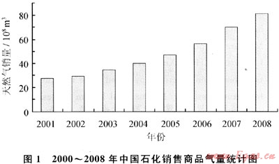 2000年以來,中國石油化工股份有限公司(以下簡稱中國石化)氣田勘探不斷獲得重大突破,階段探明儲(chǔ)量高速增長,氣層氣產(chǎn)量以年均10%以上的速度快速增長,2008年天然氣產(chǎn)量達(dá)到83×108m3。天然氣市場規(guī)模迅速擴(kuò)大,2008年中國石化銷售商品氣70.5×108m3,2009年商品氣量突破71×108m3,約占全國天然氣總消費(fèi)量的9%。