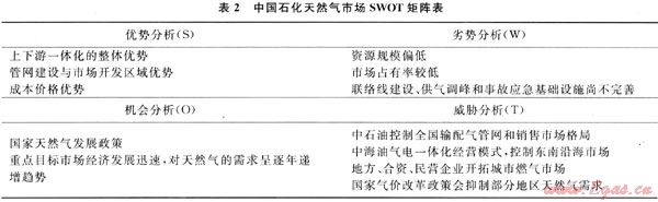2 中國石化天然氣市場競爭態(tài)勢SWOT分析