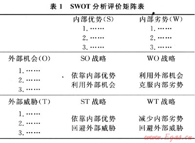 所謂SWOT分析,是指通過綜合考慮企業(yè)內(nèi)部條件和外部環(huán)境的各種岡素(包括內(nèi)部的優(yōu)勢和劣勢以及外部的機(jī)會(huì)和挑戰(zhàn)),對企業(yè)進(jìn)行系統(tǒng)評價(jià),從而選擇最佳經(jīng)營戰(zhàn)略的方法。企業(yè)通過識別自身存在的優(yōu)劣勢及環(huán)境帶來的機(jī)會(huì)和威脅來做出迅速反應(yīng)和果斷決策,從而將調(diào)查得出的各種因素根據(jù)輕重緩急或影響程度等排序方式,構(gòu)造SWOT矩陣(表1)。