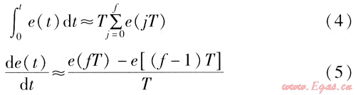 在計(jì)算機(jī)的采樣時(shí)刻t,以求和代替積分、以增量代替微分進(jìn)行離散化的近似變換: