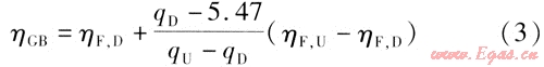 式中ηGB——按照GB 16410的方法測試的熱效率,%