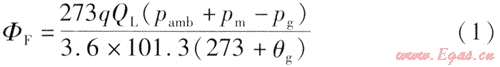 首先根據(jù)EN 301—1:1998熱負荷條款要求進行測試[2],通過下式計算得到燃燒器的額定熱負荷,表達式為: