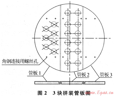 1) 加工3塊平管板(每塊重約20kg),如圖2所示。