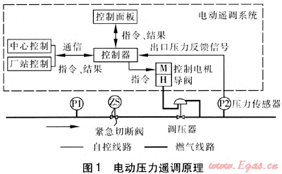 通過SCADA系統(tǒng)組態(tài)將調(diào)壓子系統(tǒng)加到中心(或廠站)控制系統(tǒng)中,將現(xiàn)場調(diào)壓系統(tǒng)的通信接口與SCADA系統(tǒng)通信網(wǎng)絡(luò)連接,即可實現(xiàn)遠(yuǎn)程的壓力調(diào)控?,F(xiàn)場調(diào)壓控制系統(tǒng)是3個組成部分的重點,它的調(diào)壓方式通常有電動調(diào)節(jié)與氣動調(diào)節(jié)兩種方式。