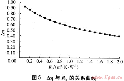 設(shè)定Rpv=1.323m2·K/W,由式(5)得到△η與Rb的關(guān)系曲線,見圖5。節(jié)能率隨基礎(chǔ)墻體的熱阻增大而降低。