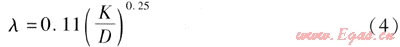 式中K——管內(nèi)壁當(dāng)量絕對粗糙度,取0.0002m