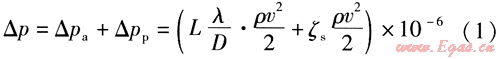將計(jì)算管段的局部阻力折算成沿程阻力,則式(1)可表示為: