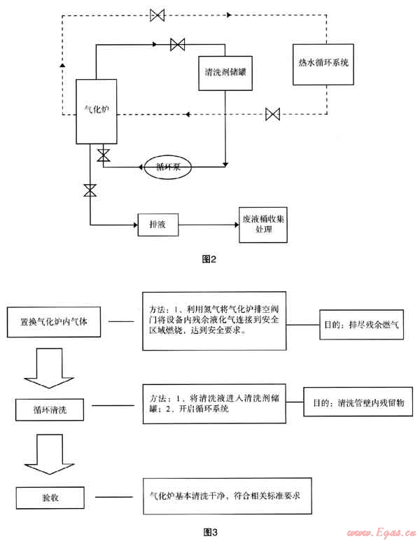 為了保證公司對(duì)經(jīng)營區(qū)域內(nèi)用戶安全、穩(wěn)定供氣,由公司安全技術(shù)處組織相關(guān)部門對(duì)市區(qū)3座氣化站所轄10臺(tái)氣化爐經(jīng)行內(nèi)部換熱層管壁(液化石油氣層)清洗[1~2]。