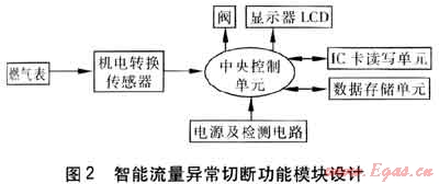 智能流量異常切斷功能模塊設(shè)計的特點為:①對民用IC卡燃氣表的異常流量超限值進行參數(shù)設(shè)定。②自動實時計算流過燃氣表的瞬時流量。③自動識別統(tǒng)計恒流時間。④可設(shè)置表內(nèi)恒流關(guān)閥時間、流量異常限值范圍、流量異常統(tǒng)計次數(shù)。⑤自動識別正常流量與異常流量,確保用戶使用燃氣不受干擾。⑥識別測試狀態(tài)與運行狀態(tài)的切換,不會影響置換等操作。
