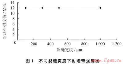 2) 不同裂縫寬度下的封堵帶強度實驗結(jié)果如圖1所示。由圖1看出,當基漿中加入防漏堵漏材料的粒徑與巖樣的裂縫寬度相匹配時(架橋顆粒直徑與裂縫寬度比值為0.85~1),形成的封堵帶都能夠承受12MPa以上的壓力而不被破壞。
