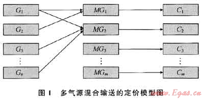 中國(guó)天然氣市場(chǎng)已進(jìn)入高速發(fā)展階段,自2000年以來(lái),國(guó)內(nèi)天然氣產(chǎn)量年均增長(zhǎng)高達(dá)13.7%[1]。據(jù)中國(guó)石油和化學(xué)工業(yè)協(xié)會(huì)統(tǒng)計(jì),中國(guó)天然氣消費(fèi)量2009年消費(fèi)量為874.5×108m3,同比增長(zhǎng)11.5%,2009年產(chǎn)量為830×108m3,增長(zhǎng)7.7%,2010年1-7月國(guó)內(nèi)天然氣產(chǎn)量同比增長(zhǎng)9.8%,達(dá)532×108m3(國(guó)家統(tǒng)計(jì)局?jǐn)?shù)據(jù))。國(guó)內(nèi)能源結(jié)構(gòu)中,目前天然氣比例不到4%,遠(yuǎn)低于世界24.1%的平均水平,按國(guó)家能源局的規(guī)劃,未來(lái)的20a里,天然氣在能源結(jié)構(gòu)中的比重將提高到8.0%以上[2],天然氣需求將達(dá)到4000×108m3,多種途徑不同氣源的天然氣將大規(guī)模進(jìn)入中國(guó)。市場(chǎng)建設(shè)方面,以西氣東輸和川氣東送等主干網(wǎng)為基礎(chǔ),各支線為輔,國(guó)內(nèi)天然氣逐步形成了東北、環(huán)渤海、華東、中南、華南、西南、西部等區(qū)域市場(chǎng)[3]。因此,多氣源供應(yīng)將成為天然氣市場(chǎng)的常態(tài),多氣源混合輸送的定價(jià)問(wèn)題將成為天然氣市場(chǎng)的焦點(diǎn)問(wèn)題。