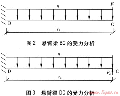 F2——轉(zhuǎn)角c處約束力對(duì)懸臂梁DC的作用力,N