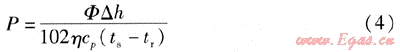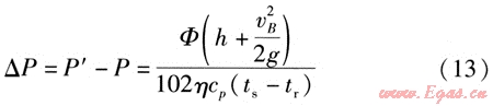 由以上分析可知,對于同一工程,如果鍋爐熱功率相同,供回水溫度相同,供熱面積相同,常壓鍋爐供熱系統(tǒng)要比有壓鍋爐供熱系統(tǒng)循環(huán)泵的功率高,二者功率差△P的計(jì)算式為: