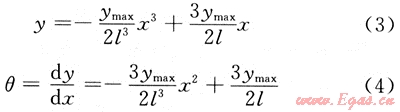 根據(jù)工程經(jīng)驗可知,管道在沉降作用下的變形是隨沉陷量的增大而增加的。設(shè)管道的變形符合三次曲線規(guī)律,由相應(yīng)的邊界條件:
