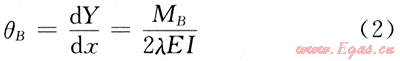 ;EI為彎曲剛度;K為彈性地基的彈簧常數(shù);MB為B點彎矩。B處轉(zhuǎn)角可用下式計算: