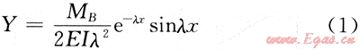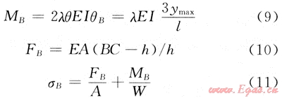 ;EI為彎曲剛度;K為彈性地基的彈簧常數(shù);MB為B點彎矩。
