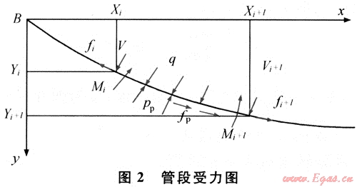 若將管道分成n段,取第i段管道為研究對象,其受力情況如圖2所示,由受力平衡狀態(tài)分析可得: