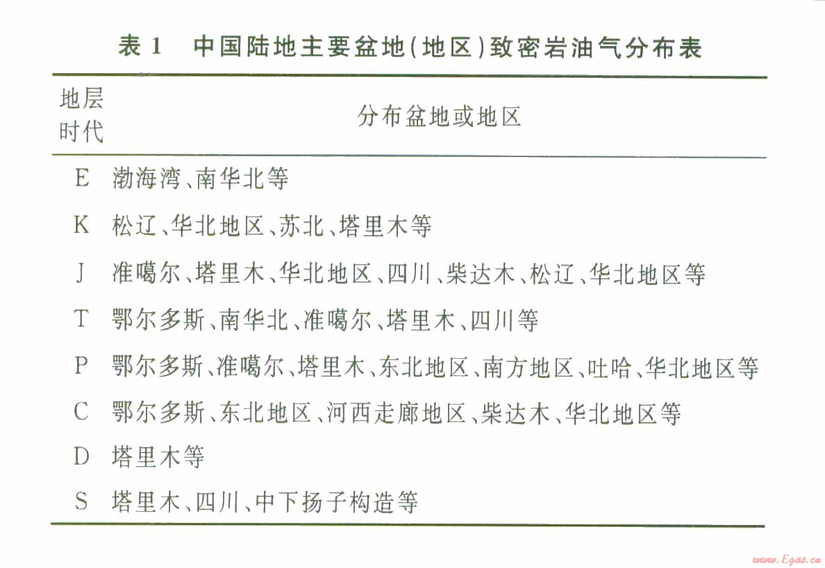1)依據(jù)目前的勘探成果,研究認(rèn)為,中國致密巖油氣具多層位富集的特點(diǎn)——志留系、泥盆系、石炭系、二疊系、三疊系、侏羅系—白堊系、古近系等均有分布(表1)。