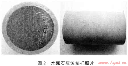 通過對(duì)目前國(guó)內(nèi)外開展的水泥石抗酸性介質(zhì)腐蝕能力的文獻(xiàn)資料調(diào)研,發(fā)現(xiàn)以往的腐蝕實(shí)驗(yàn)均是采用將水泥石樣完全浸泡在酸性環(huán)境下進(jìn)行試驗(yàn)的實(shí)驗(yàn)手段[1~3],但實(shí)際上,井下水泥環(huán)受到腐蝕是從氣層和水泥環(huán)的接觸界面開始的,而并非水泥環(huán)整體同時(shí)受到腐蝕,因此以往水泥石受酸性氣體腐蝕的實(shí)驗(yàn)結(jié)果與實(shí)際情況并不完全吻合。